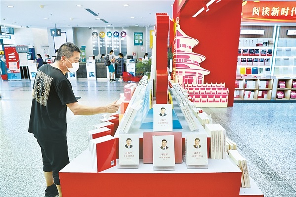 在全黨全社會迎接黨的二十大勝利召開之際,中央宣傳部(國務院新聞辦公室)會同中央黨史和文獻研究院、中國外文局編輯的《習近平談治國理政》第四卷,由外文出版社以中英文版出版,面向海內外發行。圖為《習近平談治國理政》第四卷在北京圖書大廈上架銷售。(圖片來源:人民視覺)