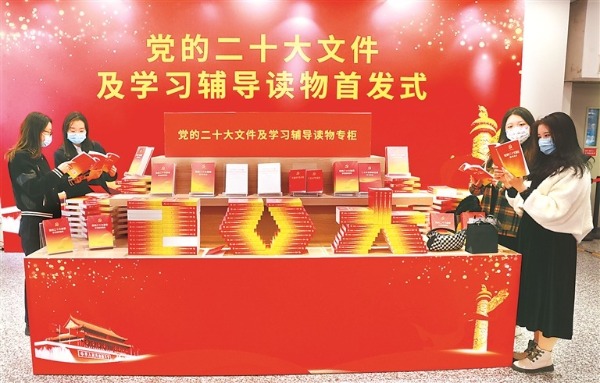 10月28日,讀者在北京圖書大廈翻看黨的二十大文件及學習輔導讀物。(圖片來源:人民視覺)