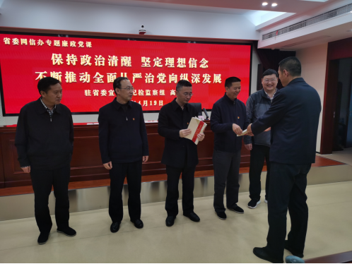 為持續加固中央八項規定精神堤壩,加強節前紀律作風建設,近日,駐省委宣傳部紀檢監察組充分發揮派駐機構“探頭”“傳感器”作用,抓住“五一”小長假來臨的關鍵節點,利用省委網信辦召開機關黨建和黨風廉政建設工作會議契機,為省委網信辦黨員干部職工奏“廉曲”、送“廉禮”,筑牢黨員干部廉政“防火墻”。
