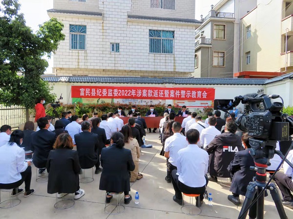 為強化對村級“人、財、權、事”特別是“一肩挑”權力的監督,進一步擴大案件的警示教育作用,縣紀委監委以網絡直播的形式現場清退查處追繳涉案款項。全縣各單位黨員干部群眾,75個村(社區)的黨總支書記、村(居)委會主任、村(居)務監督委員會主任通過“富民融媒”App同步收看直播。