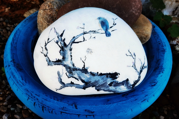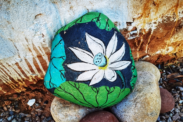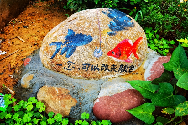 “這些石頭大部分都是村民自發地從河道里撿來的。”自從村民聽說村委會要組織人在石頭上畫畫,需要好看的石頭后,就陸續送來一些石頭,將原本靜靜躺在河道中的石頭引用到清廉村居建設當中來,讓石頭在畫中動起來、在字中活起來。