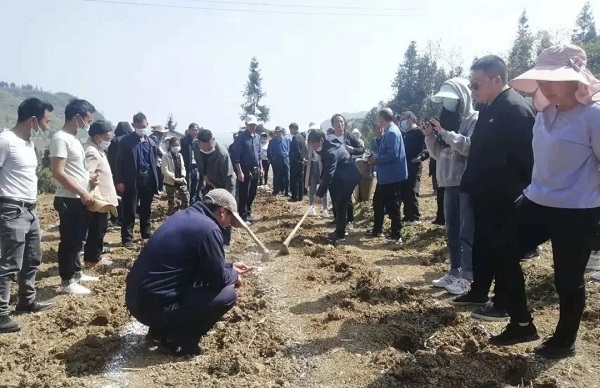 煙暖土膏民氣動,一犁新雨破春耕。天氣回暖,正是農忙好時節,鎮雄縣各鄉鎮干部以實際行動推動作風大轉變、效能大提升,積極踐行一線工作法。每天天剛蒙蒙亮,許多干部就奔赴各網格田間地頭,與群眾一起量地塊、做農活、學技術、嘮家常。全縣各鄉鎮的村樣板示范基地里上演著一幅幅干群同心、熱火朝天“鬧春耕”的動人景象。