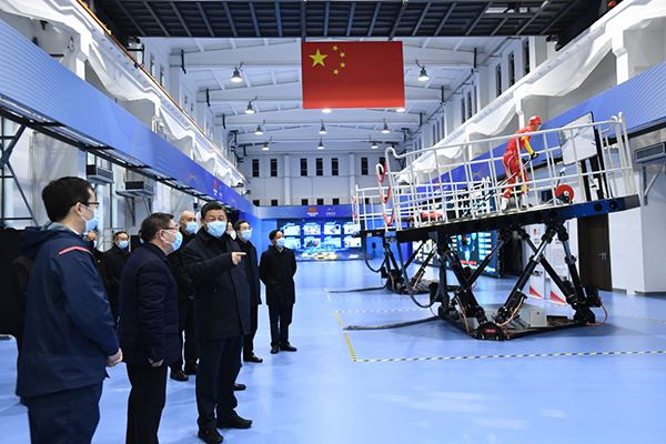 1月4日,中共中央總書(shū)記、國(guó)家主席、中央軍委主席習(xí)近平在北京考察2022年冬奧會(huì)、冬殘奧會(huì)籌辦備賽工作。這是4日下午,習(xí)近平在二七廠(chǎng)冰雪項(xiàng)目訓(xùn)練基地六自由度訓(xùn)練館考察。新華社記者 燕雁 攝