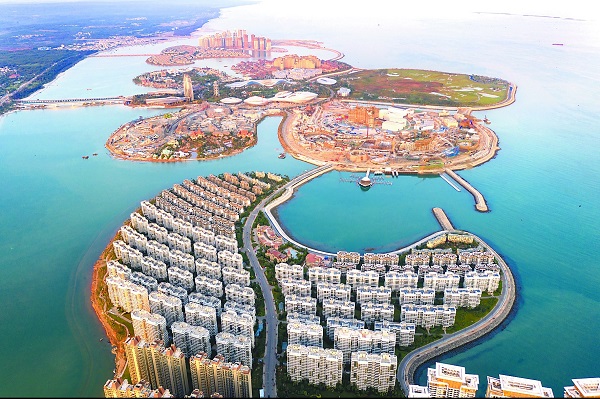 在2021年度“中國十大丑陋建筑”評選中,海南省儋州市海花島建筑群因“破壞海洋生態,形態怪異雜亂”位列榜首。圖為海花島違規建設與蔚藍的海洋形成鮮明對比。 (圖片來源:視覺中國)
