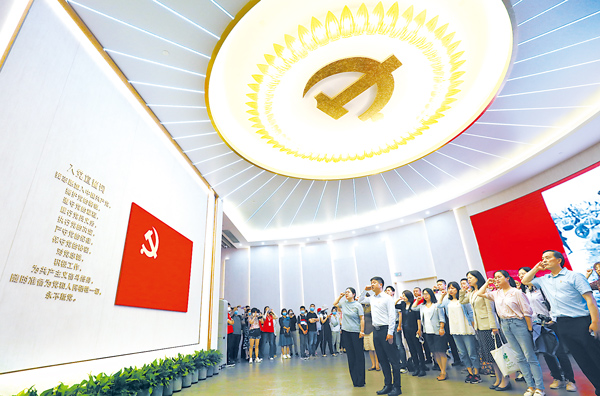 圖為黨員在上海中共一大紀(jì)念館重溫入黨誓詞。新華社記者 劉穎 攝