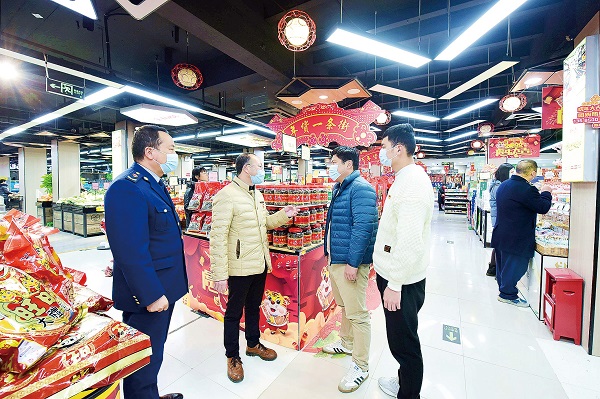 臨近春節(jié),福建省永泰縣紀委監(jiān)委聯(lián)合有關部門成立專項督查組,到轄區(qū)內(nèi)酒店、商超、特產(chǎn)店等地開展監(jiān)督檢查,深挖隱形變異“四風”問題,持續(xù)凈化節(jié)日風氣。圖為日前,該縣紀委監(jiān)委“四風”專項督查組在某超市了解相關情況。葉靜文 攝