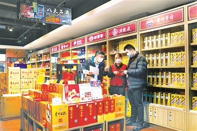 進入臘月以來,紀檢監察機關組織監督檢查組深入商場、酒店等開展專項察訪,嚴肅查處違規收送禮品禮金等頂風違紀行為。圖為春節前夕,山東省威海市文登區紀委監委工作人員正在某煙酒專柜對違規收送名貴禮品行為進行摸排。姜萬興 攝
