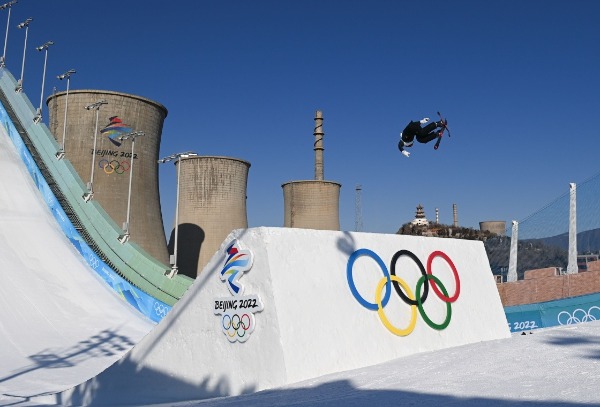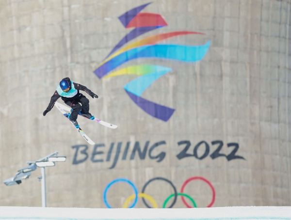 2月8日,中國選手谷愛凌在比賽中。當日,北京2022年冬奧會自由式滑雪女子大跳臺決賽在北京首鋼滑雪大跳臺舉行。新華社記者 黃宗治 攝