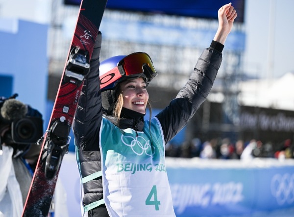2月8日,中國選手谷愛凌在比賽后慶祝。當日,在北京首鋼滑雪大跳臺舉行的北京2022年冬奧會自由式滑雪女子大跳臺決賽中,中國選手谷愛凌奪得冠軍。新華社記者 薛宇舸 攝