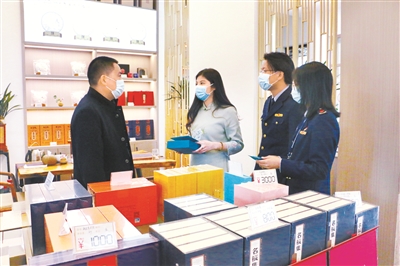福建省福清市紀(jì)委監(jiān)委把整治領(lǐng)導(dǎo)干部利用名貴特產(chǎn)類特殊資源謀取私利問(wèn)題作為正風(fēng)肅紀(jì)、反對(duì)“四風(fēng)”的整治重點(diǎn),聯(lián)合相關(guān)職能部門深入名貴特產(chǎn)經(jīng)營(yíng)場(chǎng)所進(jìn)行檢查,深化整治違規(guī)吃喝送禮歪風(fēng)。圖為該市紀(jì)委監(jiān)委干部在當(dāng)?shù)匾患也枞~店了解相關(guān)情況。 高晶晶 攝