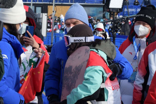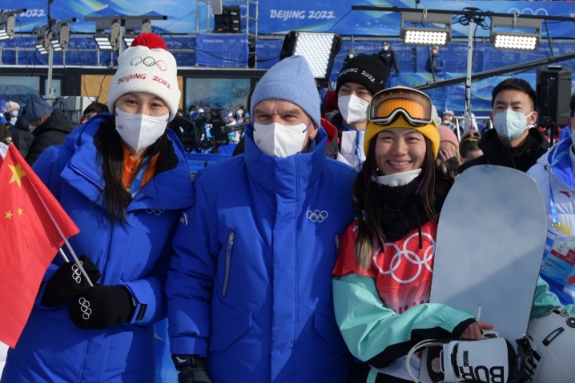 從首次參加冬奧會的第二十三名,到第二次的第六名,再到平昌冬奧會的第五和北京冬奧會的第四名,蔡雪桐每一次都在進步。圖為現(xiàn)場觀戰(zhàn)的國際奧委會主席巴赫安慰蔡雪桐。瞿芃 攝