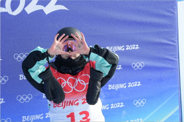 雖然沒能收獲獎牌,蔡雪桐仍然在北京冬奧會上創(chuàng)造了個人冬奧會最高排名。圖為蔡雪桐在比賽中。瞿芃 攝