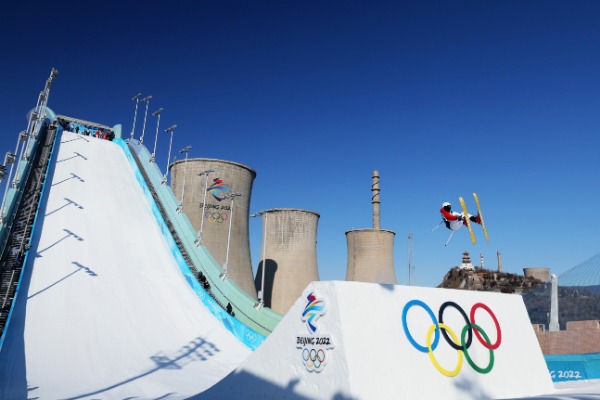 2月5日,北京2022年冬奧會自由式滑雪大跳臺項目選手正在訓練備戰。(圖片來源:視覺中國)