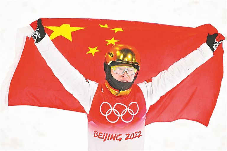 2月16日,在北京2022年冬奧會自由式滑雪男子空中技巧決賽中,中國選手齊廣璞成功摘金,圓夢冬奧。(圖片來源:視覺中國)