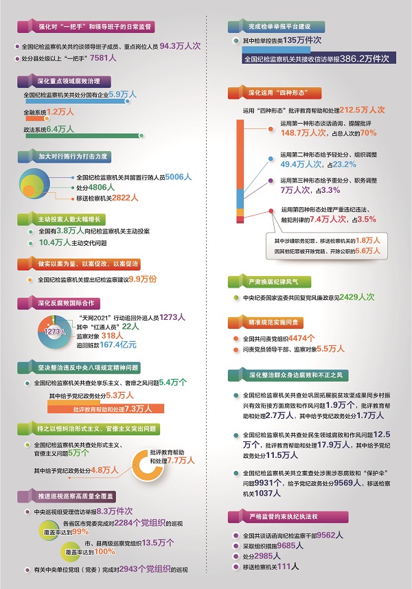 從數據看,2021年全國共問責黨組織4474個,問責黨員領導干部、監察對象5.5萬人,有效傳導壓力,保障黨中央重大決策部署貫徹落實。
