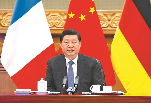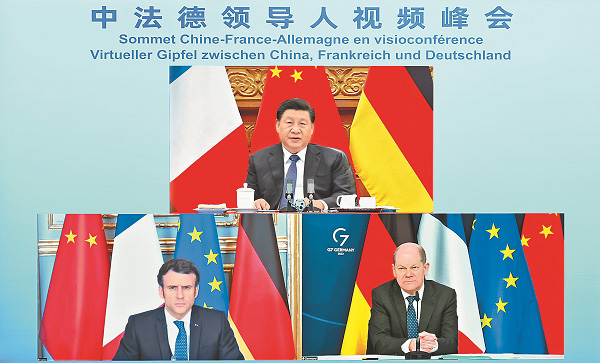 國家主席習近平3月8日下午在北京同法國總統(tǒng)馬克龍、德國總理朔爾茨舉行視頻峰會。