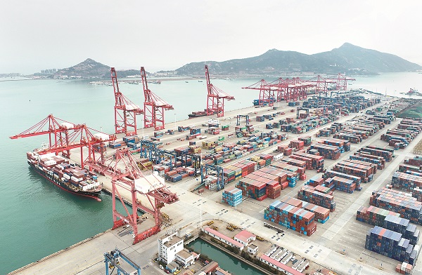 海關(guān)總署近日發(fā)布數(shù)據(jù),今年前2個(gè)月,我國(guó)貨物貿(mào)易進(jìn)出口總值6.2萬(wàn)億元,同比增長(zhǎng)13.3%。其中,出口3.47萬(wàn)億元,增長(zhǎng)13.6%;進(jìn)口2.73萬(wàn)億元,增長(zhǎng)12.9%,實(shí)現(xiàn)今年外貿(mào)穩(wěn)起步。圖為江蘇連云港港口集裝箱碼頭場(chǎng)景。新華社發(fā)(王健民 攝)