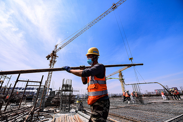 一邊抓好疫情防控,一邊緊張生產(chǎn)施工。圖為遼寧省沈陽(yáng)市中國(guó)醫(yī)大一院國(guó)家腫瘤區(qū)域醫(yī)療中心工程項(xiàng)目施工現(xiàn)場(chǎng)。 (圖片來源:人民視覺)