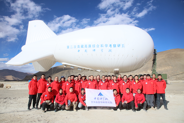 部分科考隊員在浮空艇前合影。(圖片由中國科學院空天信息創新研究院提供)