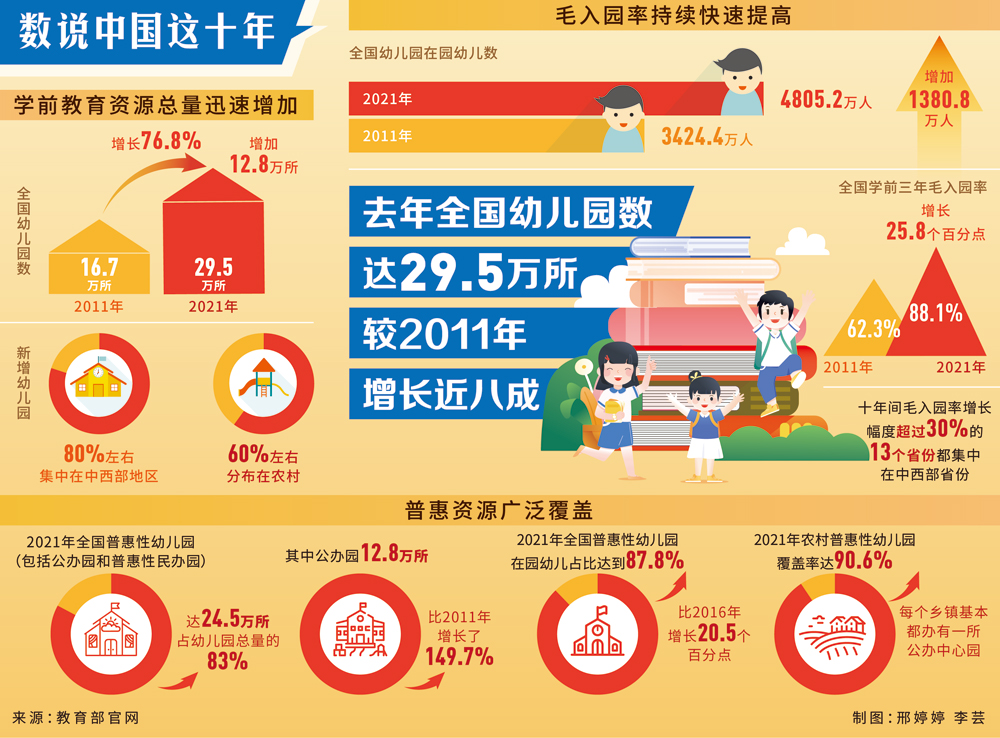 數說中國這十年 | 去年全國幼兒園數達29.5萬所 較2011年增長近八成