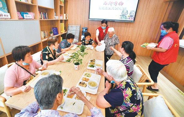 近年來,各地著力強化社區養老、托育、就業等各類服務,做到居民有需求、社區有服務,讓社區成為居民最放心、最安心的港灣。圖為6月24日,在福建省福州市鼓樓區水部街道一家老年食堂,社區志愿者為老人提供助餐服務。新華社記者 姜克紅 攝