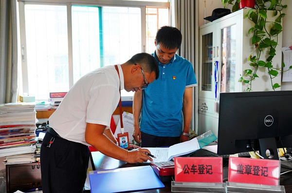 云南省各級紀檢監察機關緊盯節點,圍繞公務用車編制標準、節日期間封存、定點維修保養等制度落實情況強化監督檢查。圖為近日,西雙版納傣族自治州勐海縣紀委監委干部對該縣公車使用登記情況進行監督檢查。 沈錦祥 攝
