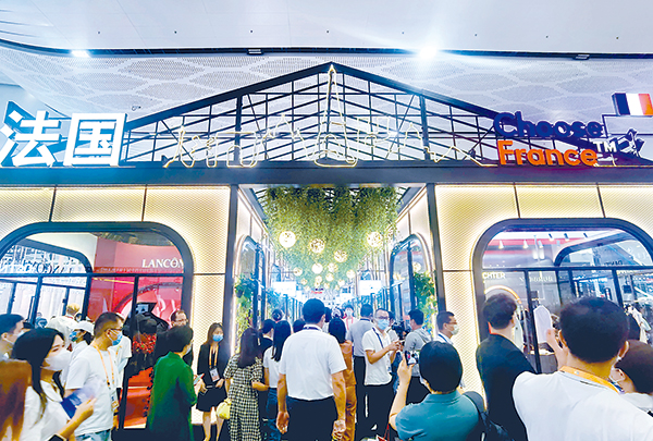 作為第二屆中國國際消費品博覽會的主賓國,法國今年參展企業近50家,參展品牌近250個,匯聚來自法國美妝、時尚、珠寶、食品酒飲、零售等諸多行業的展品,成為除中國外,參展品牌最多的國家。圖為消博會上的法國國家館。本報記者 段相宇 攝