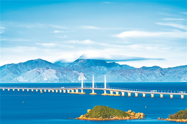 作為世界最長的跨海大橋,港珠澳大橋創造了世界橋梁史上的奇跡,粵港澳三地人流、車流和物流更加緊密地聯系在一起,大灣區內的要素流動更為便利。自通車以來,港珠澳大橋珠海口岸貨物進出口總值超3000億元。 (圖片來源:視覺中國)