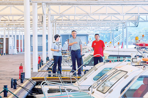 浙江省淳安縣紀委監委結合千島湖景區實際強化工作(公務)艇管理使用監督檢查力度,嚴查借考察培訓之名搞公款旅游。圖為淳安縣紀委監委會同交通部門對工作(公務)艇定點停放情況進行聯合監督檢查。毛勇鋒 攝