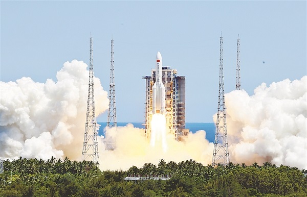 黨的十八大以來(lái),我國(guó)航天事業(yè)不斷刷新紀(jì)錄,航天科技水平實(shí)現(xiàn)跨越式發(fā)展,一次次飛天逐夢(mèng),一次次將夢(mèng)想變?yōu)楝F(xiàn)實(shí)。圖為7月24日,搭載問(wèn)天實(shí)驗(yàn)艙的長(zhǎng)征五號(hào)B遙三運(yùn)載火箭,在我國(guó)文昌航天發(fā)射場(chǎng)點(diǎn)火發(fā)射。 新華社記者 李剛 攝