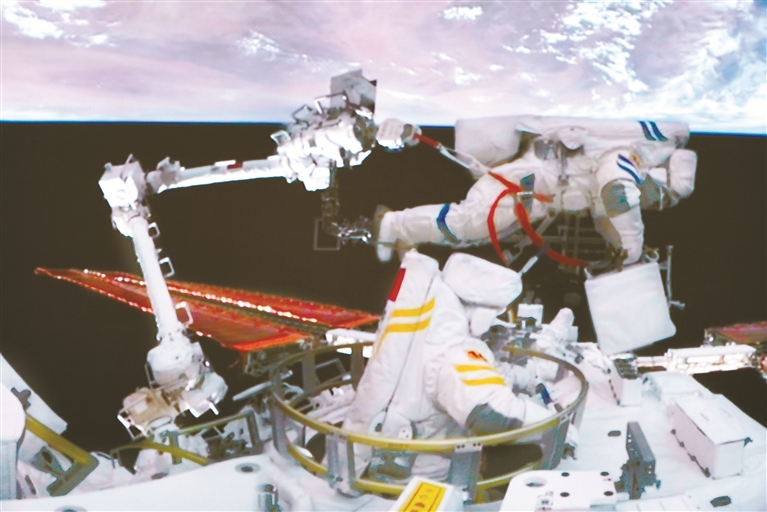 這次任務中,陳冬、劉洋在小機械臂的支持下,完成了問天實驗艙擴展泵組安裝、全景相機抬升等作業,還開展了艙外自主轉移應急返回能力驗證。