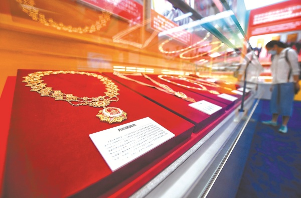圖為“奮進新時代”主題成就展上展出的共和國勛章。(圖片來源:視覺中國)