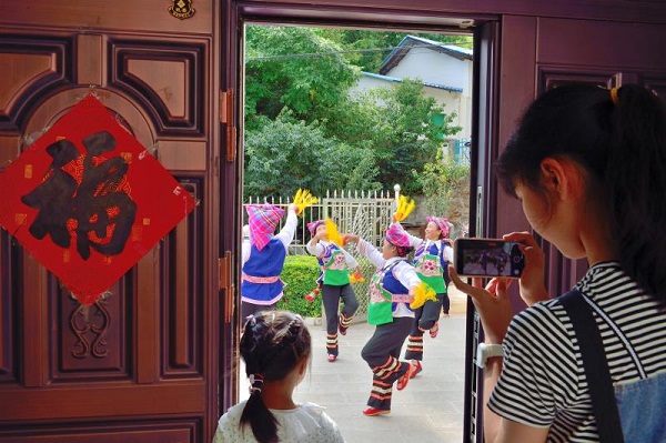在國慶節到來之際,大理白族自治州祥云縣一所小學正開展豐富多彩的慶祝活動,一張張純真燦爛的笑臉是對祖國母親73周年華誕最好的祝賀。(徐翔 攝)