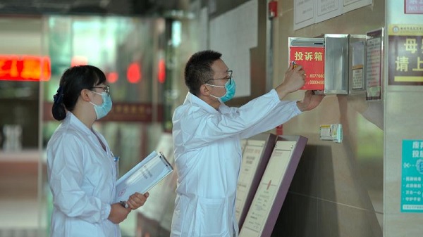 國慶期間,曲靖市馬龍區中醫院紀檢委員堅守崗位,及時搜集群眾就醫的意見建議,不斷完善服務,帶來更便捷的就醫體驗。(方俊 攝)