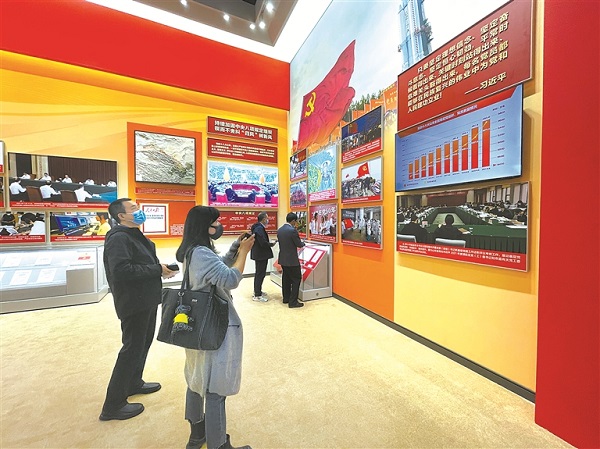 近日,“奮進(jìn)新時代”主題成就展在北京展覽館正式開幕。圖為觀眾參觀“全面從嚴(yán)治黨 保持黨的生機(jī)活力”展區(qū)。 本網(wǎng)記者 李玉龍 攝