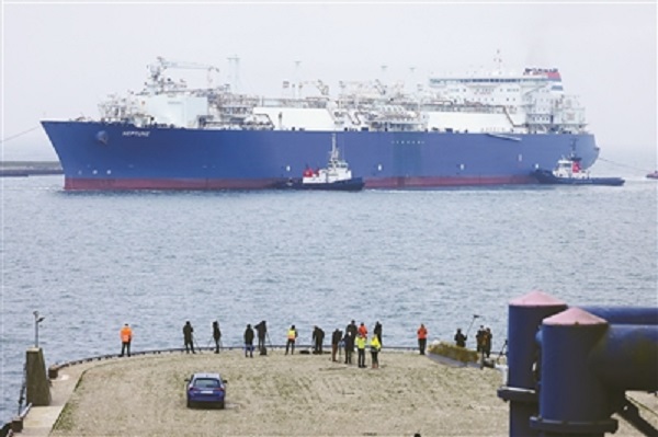 為使用液化天然氣以替代俄羅斯管道運輸天然氣,德國政府今年將租用4艘特種船作為液化天然氣儲存及再氣化裝置。圖為當(dāng)?shù)貢r間11月23日,首艘液化天然氣特種船“海王星”號抵達德國呂根島。(圖片來源:視覺中國)