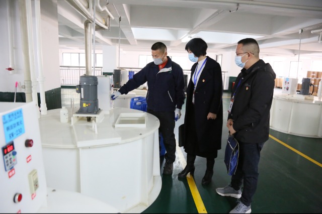 浙江省開化縣紀委監委聯合縣應急管理局組成聯合督查組,圍繞危化品使用、管理及存放等重點內容,深入企業一線突擊檢查,壓緊壓實監督單位主體責任,確保生產安全。圖為聯合督查組在開化瑞達塑膠科技有限公司檢查相關情況。(浙江省開化縣紀委監委供 余青青 攝)