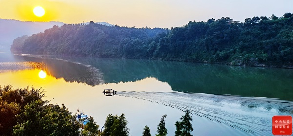 夏日清晨,太陽初升,沙溪河河面泛著點(diǎn)點(diǎn)曦光,在兩岸郁郁蔥蔥的樹木環(huán)繞中,陽光鋪展開一條金色的航道,漁民駕駛著漁船在河面掀起一道道微波。(福建省三明市沙縣區(qū)紀(jì)委監(jiān)委供 陸輔春 攝)