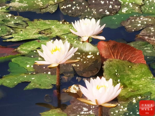 夏日清晨,成都市成華區(qū)北湖生態(tài)公園內(nèi),盛開的睡蓮?fù)α⒃诒叹G的蓮葉間,給寧靜的池塘增添了一份生機(jī),微風(fēng)吹過縷縷清香,沁人心脾。(成都市成華區(qū)紀(jì)委監(jiān)委 王璐 攝)