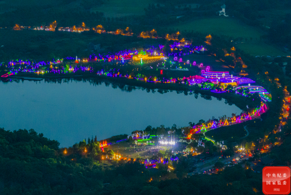 8月7日至9月20日,江蘇省張家港雙山香山旅游度假區在香山湖公園舉行“光影夢之旅 夜游香山湖”2022香山國潮燈光游園會,8000萬盞霓虹燈交織出夢幻仙境,扮靚了暑期夏夜。(江蘇省張家港市紀委監委 冉銀銀 攝)