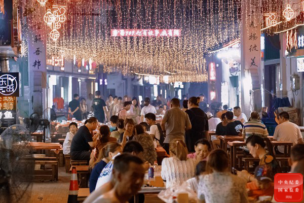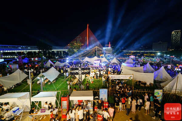 今年以來,湖北省宜昌市聚焦打造區域性消費中心,發揮政府引導、協會指導和企業主導作用,消費市場持續火爆。圖為西壩不夜城舉辦夜經濟生活美食之旅暨“西壩之夜”啤酒音樂節啟動儀式活動。(湖北省宜昌市紀委監委派駐市發改委紀檢監察組 王遠 攝)