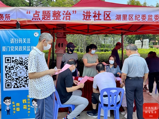 福建省廈門市湖里區(qū)紀(jì)委監(jiān)委為切實(shí)回應(yīng)群眾期盼,在基層社區(qū)設(shè)立群眾問題反映訴求征集點(diǎn),打通群眾反映訴求解決的“最后一百米”,面對面傾聽群眾訴求和意見,廣泛收集問題線索,整治群眾身邊的“微腐敗”。(福建省廈門市湖里區(qū)紀(jì)委監(jiān)委供 姚天妹 攝)
