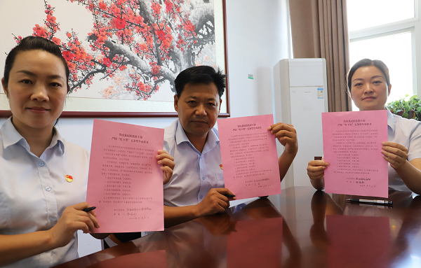 河南省魯山縣紀(jì)委監(jiān)委紀(jì)檢監(jiān)察干部在節(jié)前簽訂“嚴(yán)防‘燈下黑’五條禁令承諾書”,嚴(yán)格執(zhí)行“六項紀(jì)律”,自覺接受最嚴(yán)格的約束和監(jiān)督,以身作則,嚴(yán)于律己。(河南省魯山縣紀(jì)委監(jiān)委供 陳燦燦 攝)
