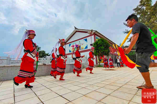 云南省陸良縣因地制宜建設(shè)文化廣場(chǎng)、非遺傳習(xí)場(chǎng)所等主題功能空間,盤活鄉(xiāng)村文化資源,以文化繁榮助力鄉(xiāng)村振興。圖為彝族群眾在小百戶鎮(zhèn)打鼓彝族村“大三弦”舞蹈?jìng)髁?xí)所表演三弦舞。(云南省陸良縣紀(jì)委監(jiān)委 王勇 攝)