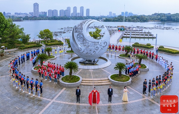 國慶佳節,安徽省蕪湖市灣沚區開展各類文體活動,營造濃厚的節日氛圍。圖為該區正在進行百名群眾大合唱活動。(安徽省蕪湖市灣沚區紀委監委供 李明仙 攝)