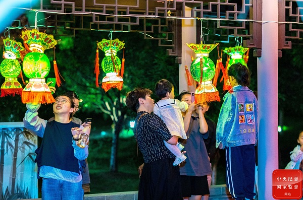 國慶期間,浙江省平湖市舉辦瓜燈游園活動。喜迎二十大、共同富裕、歡度國慶……各式各樣主題的瓜燈吸引不少市民群眾打卡。(浙江省平湖市紀委監委供 朱霞 攝)