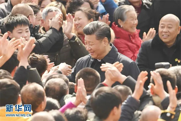2018年2月12日上午,習近平在成都市郫都區戰旗村考察時同村民們親切交流。新華社記者 張鐸 攝