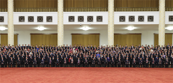 中共中央總書記、國家主席、中央軍委主席習近平23日下午在人民大會堂親切會見了出席黨的二十大代表、特邀代表和列席人員,并同大家合影留念。