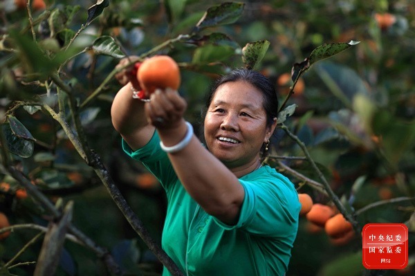 秋去冬來萬物休,唯有柿樹掛燈籠。云南省德宏州芒市軒崗鄉的山坡上,火紅的柿子掛滿枝頭。農家人正在采摘,樹上的“紅燈籠”映襯著她幸福的笑臉,這是藏不住的喜悅。(云南省德宏州芒市紀委監委供 鄭山河 攝)