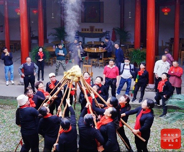 立冬至,風微涼。在江西省大余縣葉墩村,人們精心選取新出的粳米和糯米,用山上摘的梔子果實染成金黃,用心蒸熟、用力捶打,米香和花香交融的黃元米果,是農家人對豐收和美好生活的期盼。 (江西省大余縣紀委監委供 余先媛 攝)